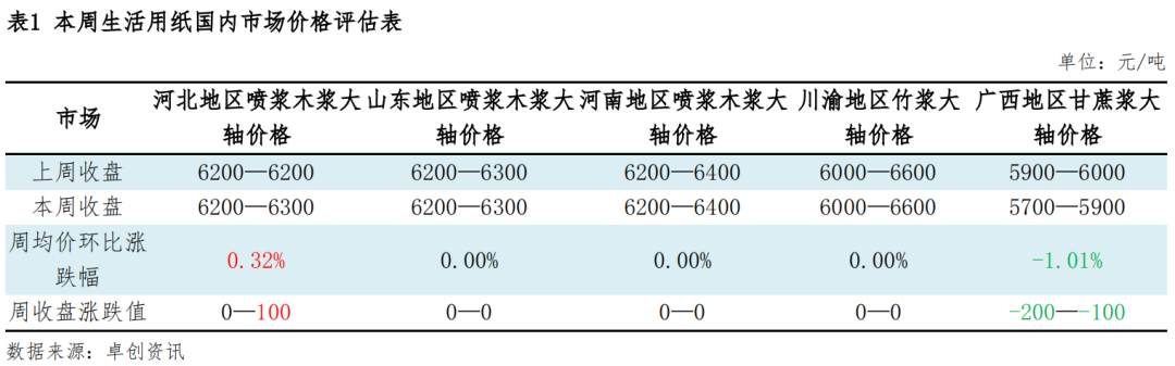 【本周生活用纸市场回顾】