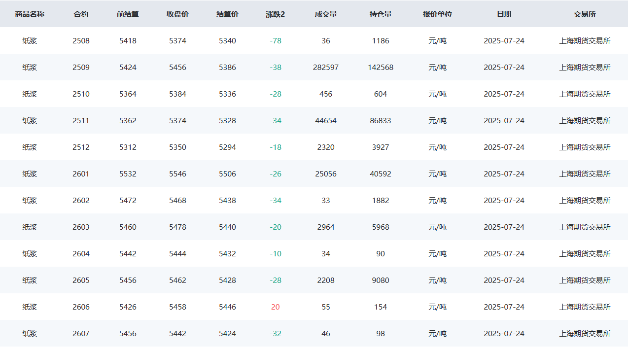 2025年7月24日昨日纸浆市场回顾