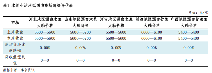 昨日生活用纸市场价格暂稳为主,市场交投活跃度变化不大,场内暂无利好支撑。原料纸浆市场区间内整理运行,市场交投积极性一般,对生活用纸纸价支撑作用偏弱;生活用纸终端下游需求未明显好转迹象,部分纸企出货速度放缓,行业整体开工水平低位徘徊。综合来看,当前供需博弈下,预计短线内生活用纸市场价格或将震荡调整,重点关注原料浆价的变动及主力纸企纸机运行情况。