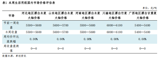 针叶浆现货市场贸易商业者出货未见明显提速,多数稳盘观望,个别牌号价格上涨10-20元/吨;进口阔叶浆市场贸易商业者对于低价仍较惜售,下游刚需跟单,市场主流盘整;进口本色浆市场近期需求适度跟进,部分业者挺价惜售,山东及江浙沪市场价格上调30-50元/吨;进口化机浆市场交投相对有限,价格盘整为主。