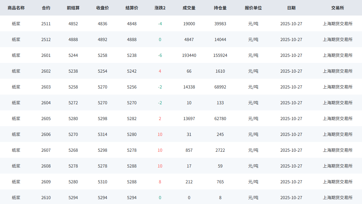 2025年10月27日昨日纸浆市场回顾