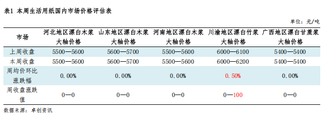 针叶浆:布针报收4830-4840元/吨,乌针报收5150元/吨,太平洋报收5300元/吨,月亮报收5280-5300元/吨,雄狮、马牌报收5350元/吨,银星报收5500元/吨,凯利普报收5550-5580元/吨,北木报收5900元/吨,金狮报收6200元/吨,南方松报收6000-6500元/吨。