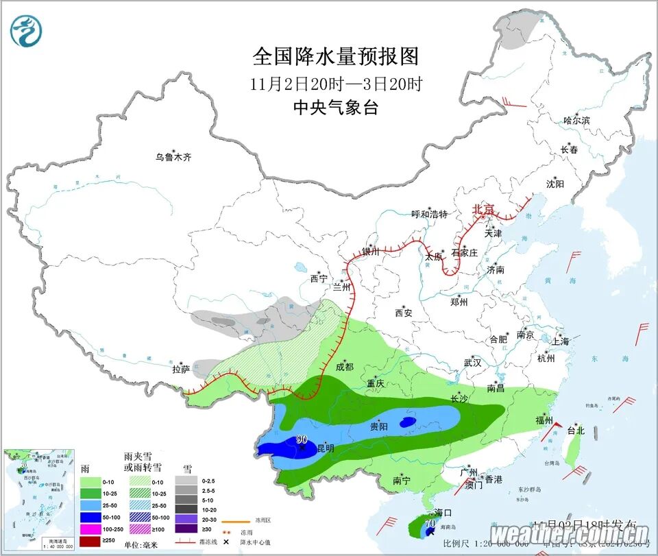 11月3日,我国东北地区和青藏高原的雨雪逐步缩减,但南方降雨发展增强,西南、江南等地部分地区有暴雨或大暴雨。随着阴雨增多,南方多地气温下降,体感湿凉,公众请注意防雨、保暖。而北方多地气温起伏较大,需及时调整着装,谨防感冒。