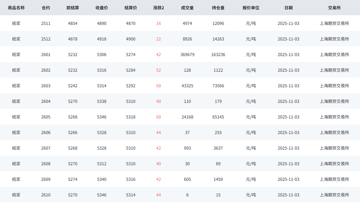 2025年11月03日昨日纸浆市场回顾