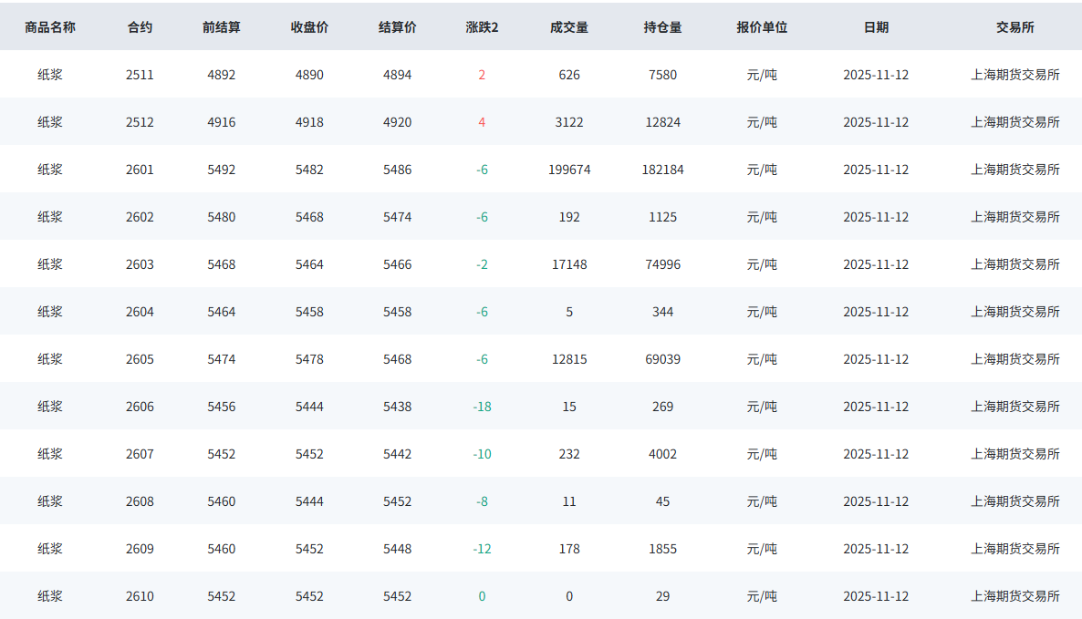 2025年11月13日昨日纸浆市场回顾