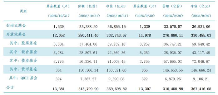中国基金业协会最新发布的数据显示,截至2025年10月底,我国境内公募基金资产净值规模合计36.96万亿元。