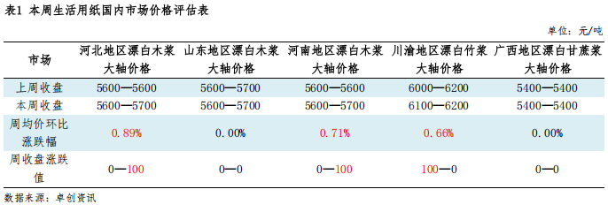 针叶浆:布针报收4800-4850元/吨,乌针报收5350元/吨,月亮、太平洋报收5460-5480元/吨,雄狮、马牌报收5520-5530元/吨,银星报收5530-5550元/吨,南方松报收5600-5900元/吨,凯利普报收5620-5630元/吨,北木报收5800-5820元/吨,金狮报收6300元/吨。