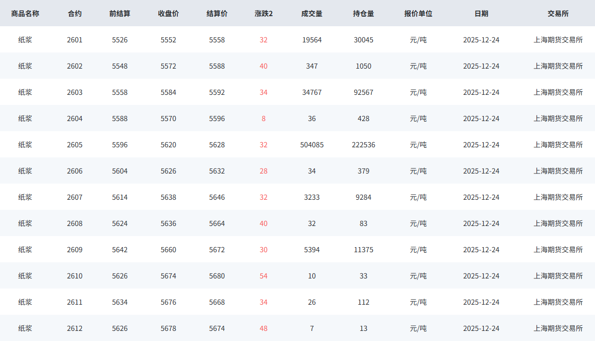 期货市场:合约夜盘下跌。SP主力05合约报收5574点,较昨日收盘价基跌54点,合计0.96%。