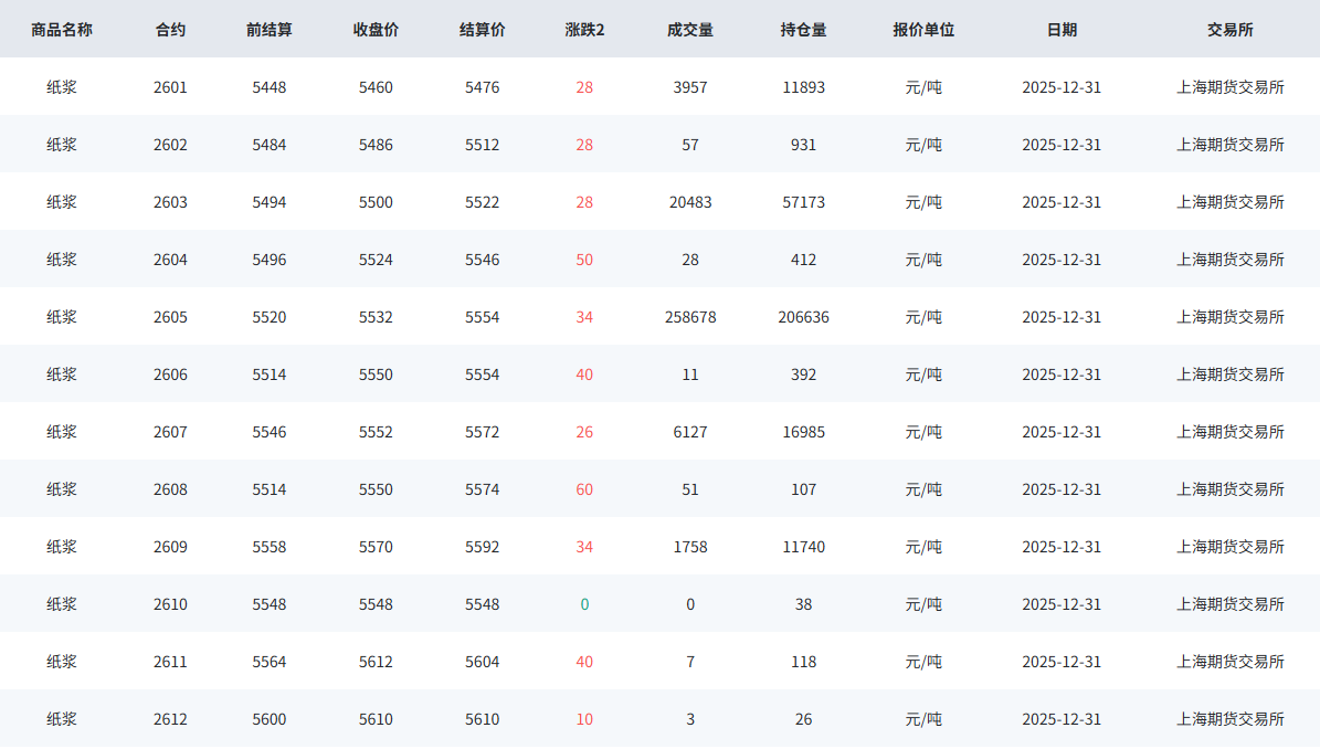非木浆上期收盘价格表