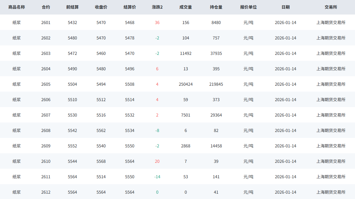 2026年1月14日纸浆现货行情