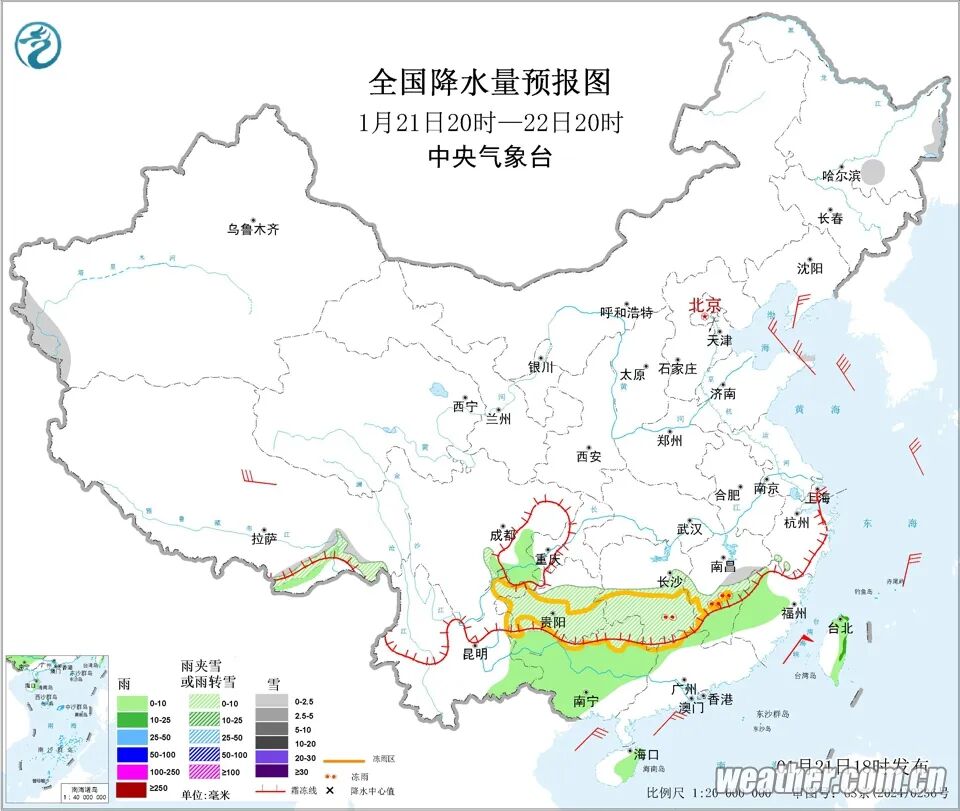 南方雨雪继续减少、减弱,但湖南、贵州等地部分地区仍有冻雨,需注意防范。今明两天,中东部大部将进入雨雪间歇期。随着寒潮和雨雪影响结束,24日起长江以南地区气温将陆续转为偏高,但长江以北地区后期还有冷空气影响,北方多地气温持续偏低,需注意保暖。