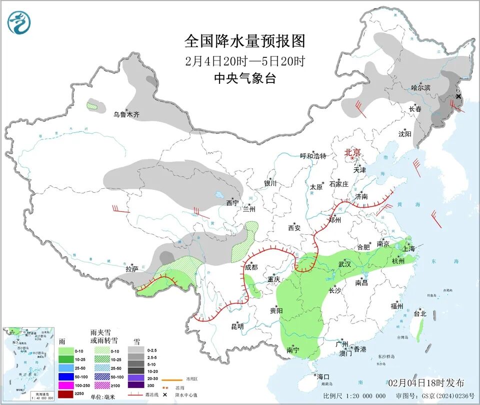 5日起,寒潮来袭,大部地区将现显著降温,东北和长江中下游等地降温最为剧烈,同时南方会将迎来一轮大范围雨雪天气过程。需防范雨雪天气和气温骤降对春运及能源供应带来影响。