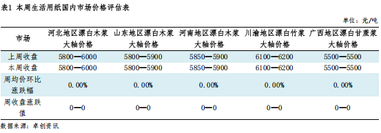 昨日生活用纸市场价格区间整理为主,市场整体交投活跃度变化不大,业者观望情绪较浓。原料纸浆市场价格区间震荡,阔叶浆价格依旧平稳,生活用纸成本面支撑作用有限;生活用纸终端下游需求不温不火,未见明显提振,部分纸企出货表现欠佳,行业整体开工水平区间波动。综合来看,当前供需博弈下,预计短线内生活用纸市场价格或将以稳为主,重点关注原料浆价的变动及下游需求复苏动向。