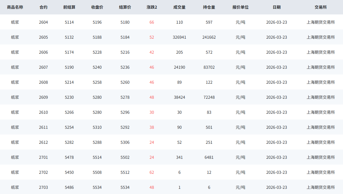 期货市场:SP05合约继续上行,夜盘报收5234点,较昨日结算价涨50元/吨。