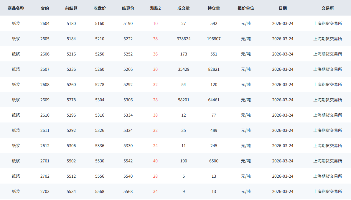 期货市场:SP主力05合约震荡偏强,报收5196点,较昨日结算价涨8元/吨。