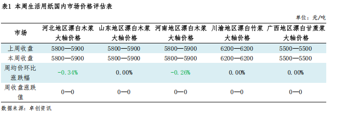 非木浆市场收盘价格表
