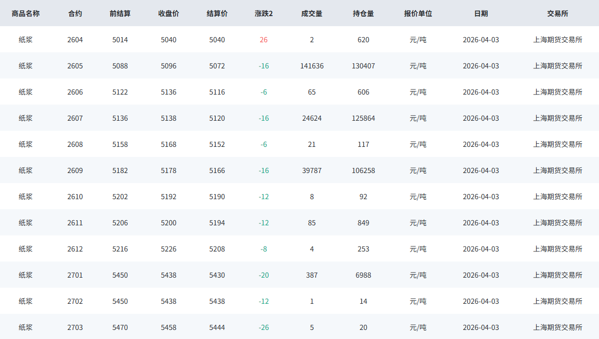 期货市场:SP主力05合约小幅走强,报收5096点,较昨日结算价涨8元/吨。