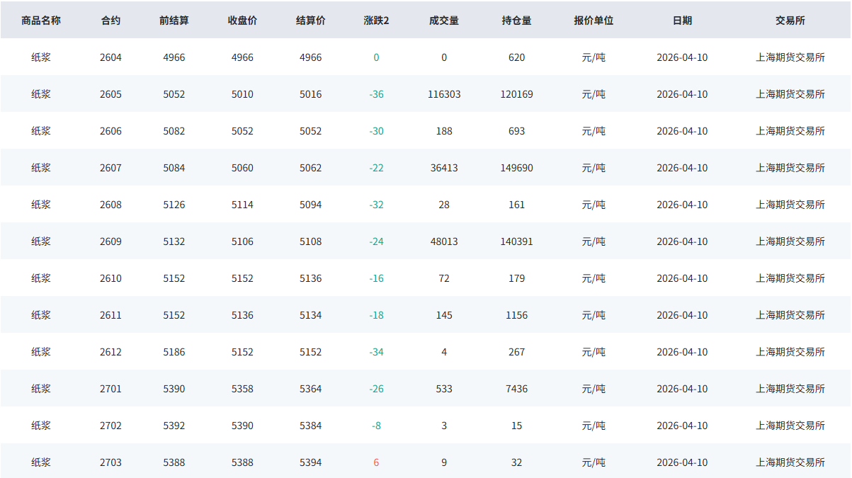 期货市场:SP主力05合约小幅走弱,报收4976点,较昨日结算价跌40元/吨。