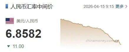 4月15日,人民币兑美元中间价报6.8582,上调11个基点。