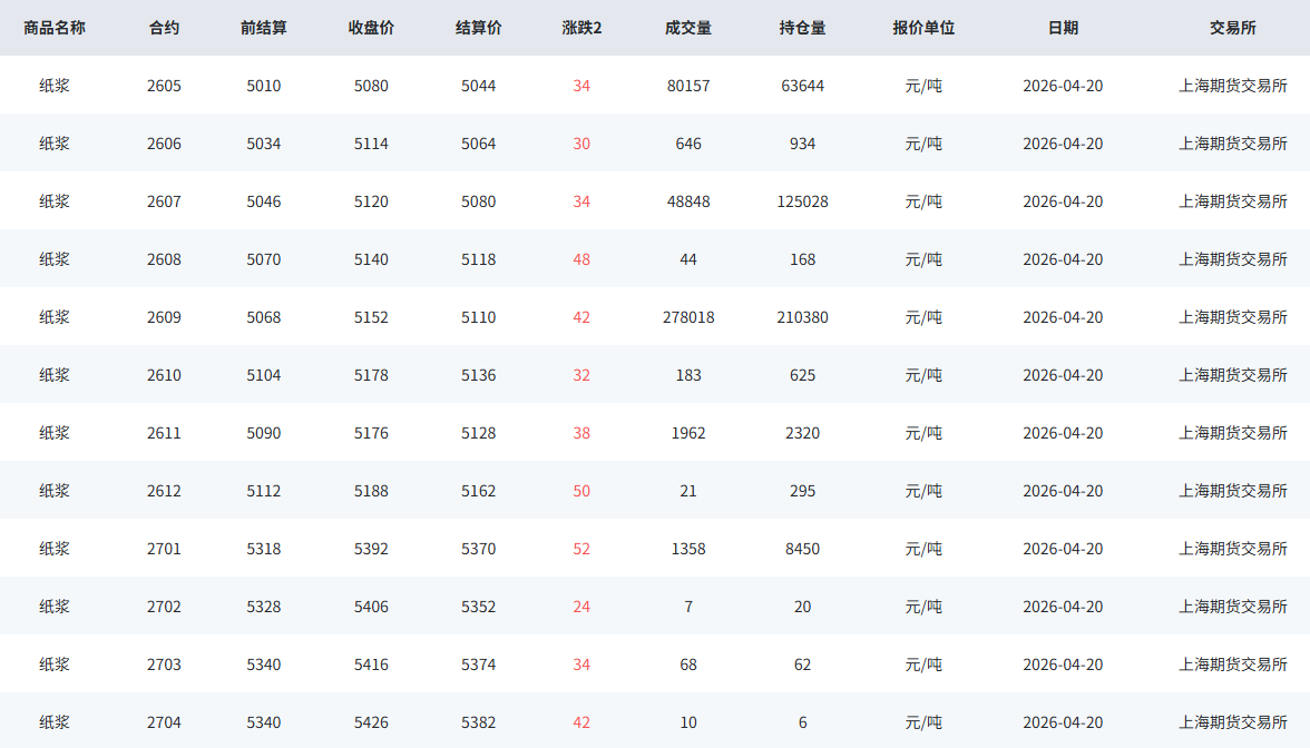 针叶浆现货市场贸易商由于部分牌号当前可售货源偏少,对于低价的惜售情绪升温,报盘继续跟随盘面上调,但高价目前成交放量尚待观望,涨30-120元/吨;进口阔叶浆市场贸易商挺价出货意愿延续,个别略上调出货报盘,下游纸企按需补库为主,山东、江浙沪市场价格存上调10-20元/吨的现象;进口本色浆以及进口化机浆市场交投活跃度有限,价格僵持盘整。