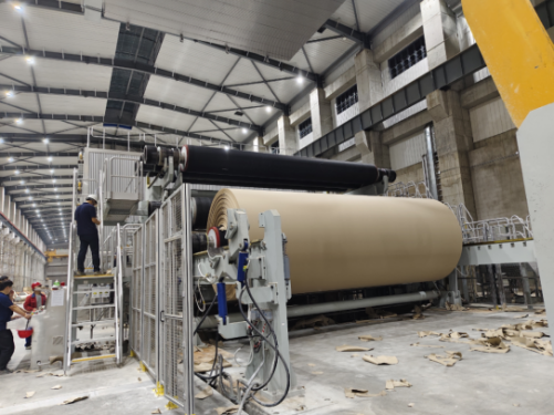 这台6.6米高速瓦楞纸机,设计车速达到1100米/分,在幅宽与车速上均达到国际先进水平。其生产的高强度瓦楞纸,楞形完整、抗压性强,可满足电商物流、重型包装等高端应用场景需求,完美适配国内废纸主导时代的原料特性。整机采用智能化控制系统,能实现工艺参数的精准调控,配合高效烘干部与精准涂胶技术,在提升生产效率的同时,有效降低汽耗、电耗与胶耗,实现绿色低碳生产。从开机调试到稳定运行,设备的可靠性与稳定性得到充分验证,为纸企带来显著的投资回报。