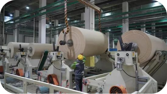步入凤生纸业生活用纸车间,机械的轰鸣声扑面而来,各类造纸设备开足马力、满负荷运转,一条条智能化生产线有条不紊地飞速作业。