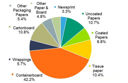 其他纸类:主要用于工业及特殊用途的其他纸种产量增长了0.4%,占总产量的4.8%。